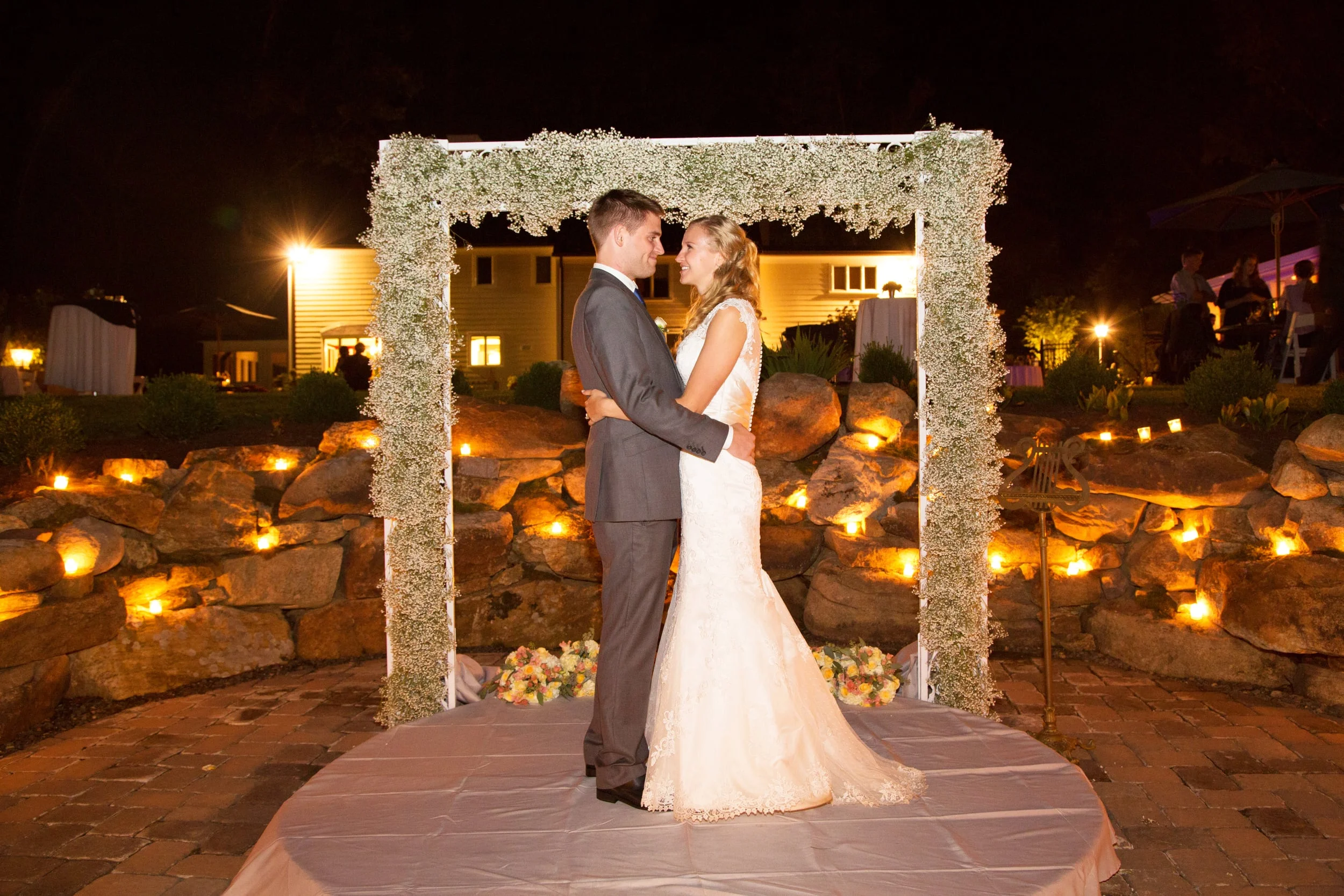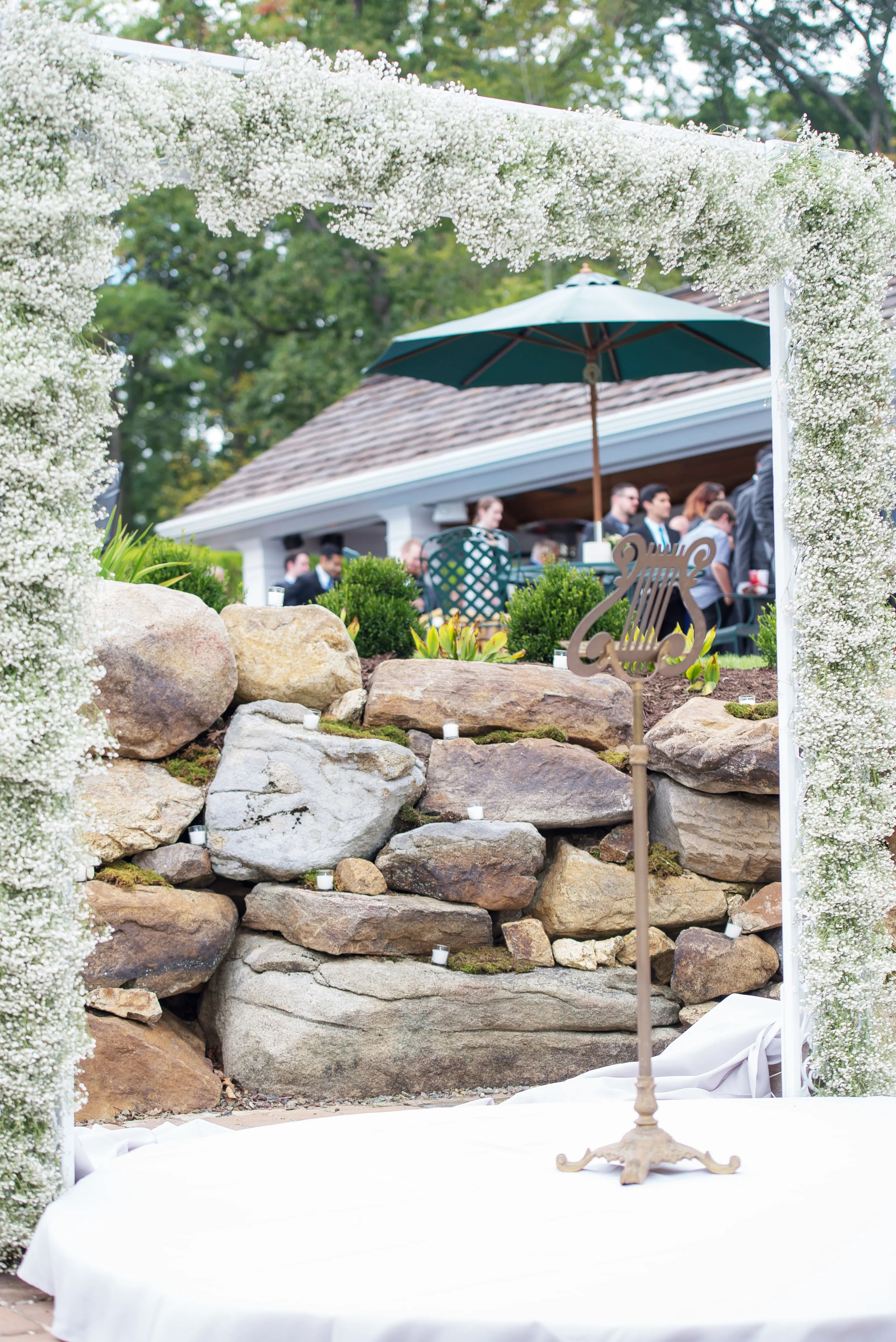 Ceremony, babies breath arch, which the form for it was the metal lattice over the front door before they did the remodel on the house.